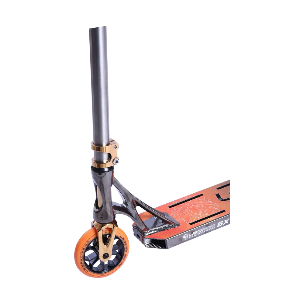 קורקינט הפעלולים Leo Pro SX משלב קלילות יוצאת דופן עם עמידות מרבית, הודות לשלדת האלומיניום האיכותית והכידון הטיטניום המקצועי. הוא תוכנן במיוחד עבור רוכבים מגיל 6 ומעלה המחפשים ביצועים מעולים הן בסקייטפארק והן ברחוב.